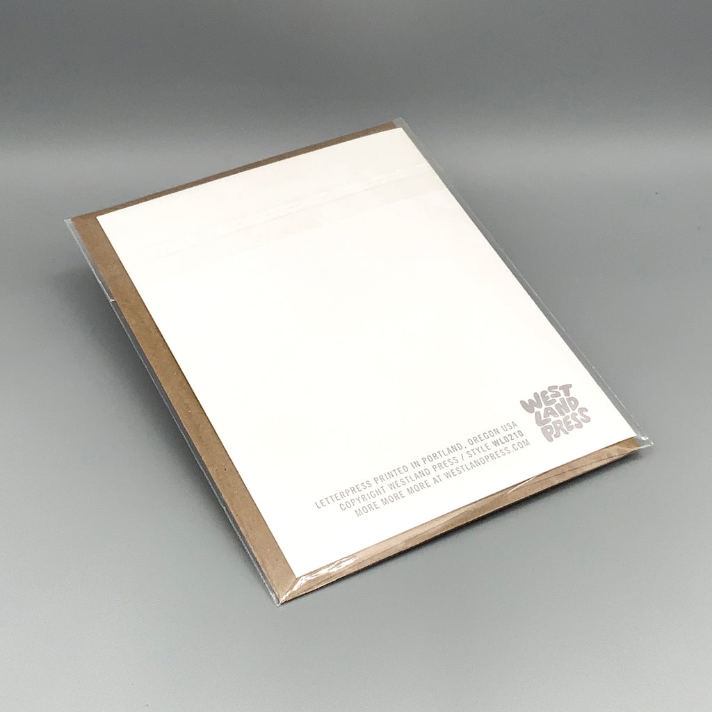 A folded note card with kraft envelope.